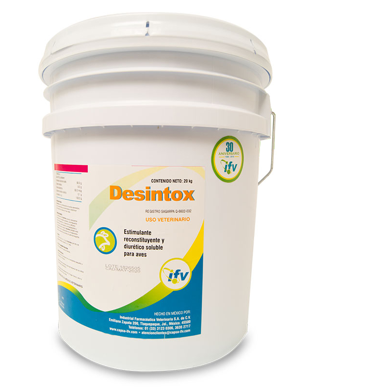 DESINTOX estimulante, reconstituyente y diurético soluble para aves.